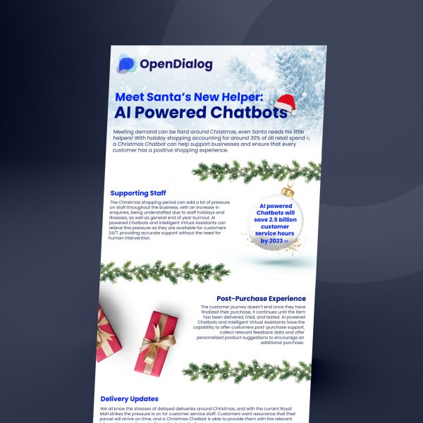 Meeting demand can be hard around Christmas, even Santa needs his little helpers! With holiday shopping accounting for around 30% of all retail spend, a Christmas Chatbot can help support businesses and ensure that every customer has a positive shopping experience.